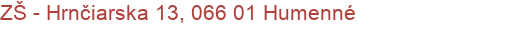 Adresa : Hrnčiarska 13, 066 01 Humenné