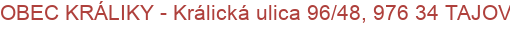 Adresa : Králická ulica 96/48, 976 34 TAJOV
