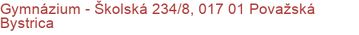 Adresa : Školská 234/8, 017 01 Považská Bystrica
