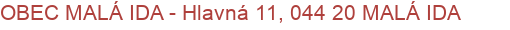 Adresa : Hlavná 11, 044 20 MALÁ IDA