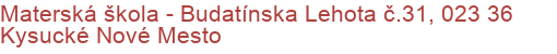 Adresa : Budatínska Lehota č.31, 023 36 Kysucké Nové Mesto