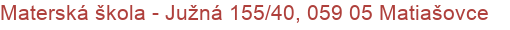 Adresa : Južná 155/40, 059 05 Matiašovce