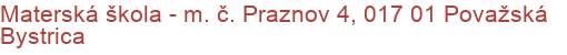 Adresa : m. č. Praznov 4, 017 01 Považská Bystrica