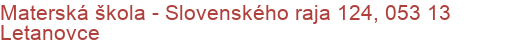 Adresa : Slovenského raja 124, 053 13 Letanovce