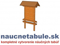 NT SK s.r.o. - NAUCNETABULE.SK zabezbečuje kompletnú realizácia náučných a informačných tabúľ osadených do exteriéru. Ide o zákazkovú výrobu, ktorá sa maximálne prispôsobuje zákazníkovi. Naše služby obsahujú kompletný servis od návrhu a výroby konštrukcie tabule, dodanie plastovo-hliníkovej časti tabule s graficko-textovou časťou, grafický návrh graficko-textovej časti tabule až po dodanie vlastnou dopravou a osadenie náučných tabúľ v teréne.