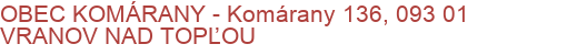 Adresa : Komárany 136, 093 01 VRANOV NAD TOPĽOU