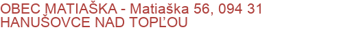 Adresa : Matiaška 56, 094 31 HANUŠOVCE NAD TOPĽOU