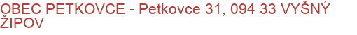 Adresa : Petkovce 31, 094 33 VYŠNÝ ŽIPOV