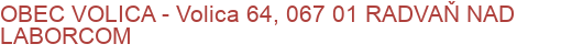 Adresa : Volica 64, 067 01 RADVAŇ NAD LABORCOM