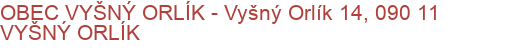 Adresa : Vyšný Orlík 14, 090 11 VYŠNÝ ORLÍK