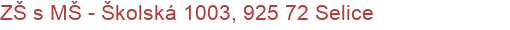 Adresa : Školská 1003, 925 72 Selice