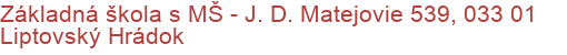 Adresa : J. D. Matejovie 539, 033 01 Liptovský Hrádok