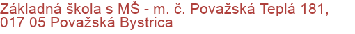 Adresa : m. č. Považská Teplá 181, 017 05 Považská Bystrica