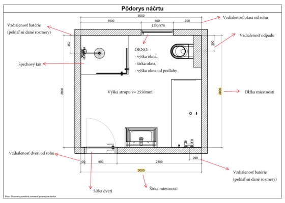 Pre vyhotovenie 3D vizualizácie budeme potrebovať skutočné rozmery navrhovaného priestoru (podľa ilustračného obrázku), prípadne ďalšie podklady, podľa Vášho uváženia (napr. fotografie).